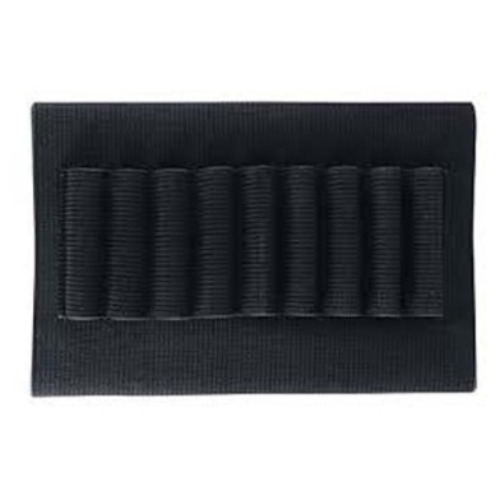 Soporte para culata de rifle Capacidad para 6 cartuchos de rifle de fuego central. Se desliza sobre la culata del rifle Elástico Trabillas elásticas cosidas Cierre de velcro Resistente a la intemperie y a los golpes de color Negro